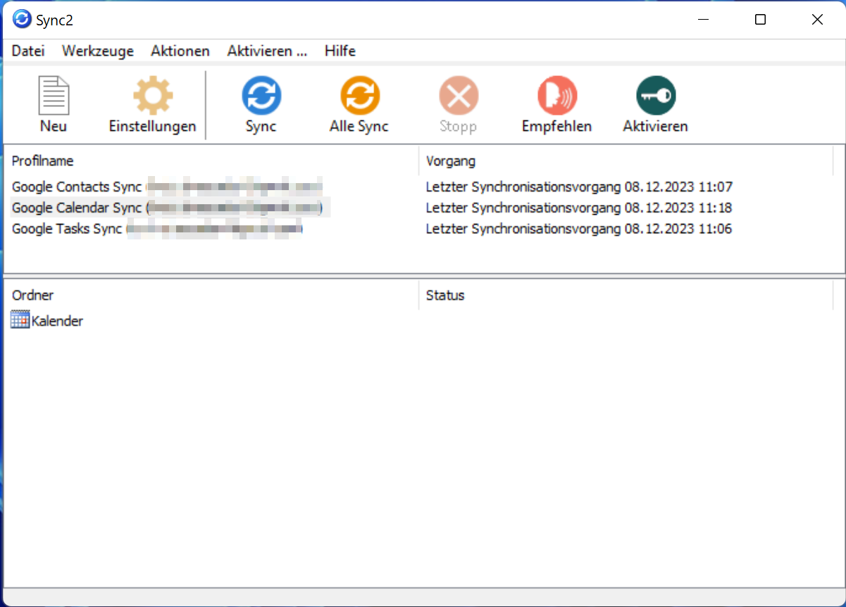 Synchronisation von Outlook und Google-Kalender über Sync2