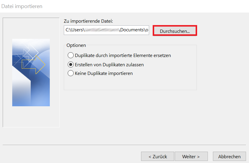 - Keine Duplikate importieren: Ist ein Kontakt in Outlook bereits vorhanden, werden die zu importierenden Informationen zu diesem verworfen.
