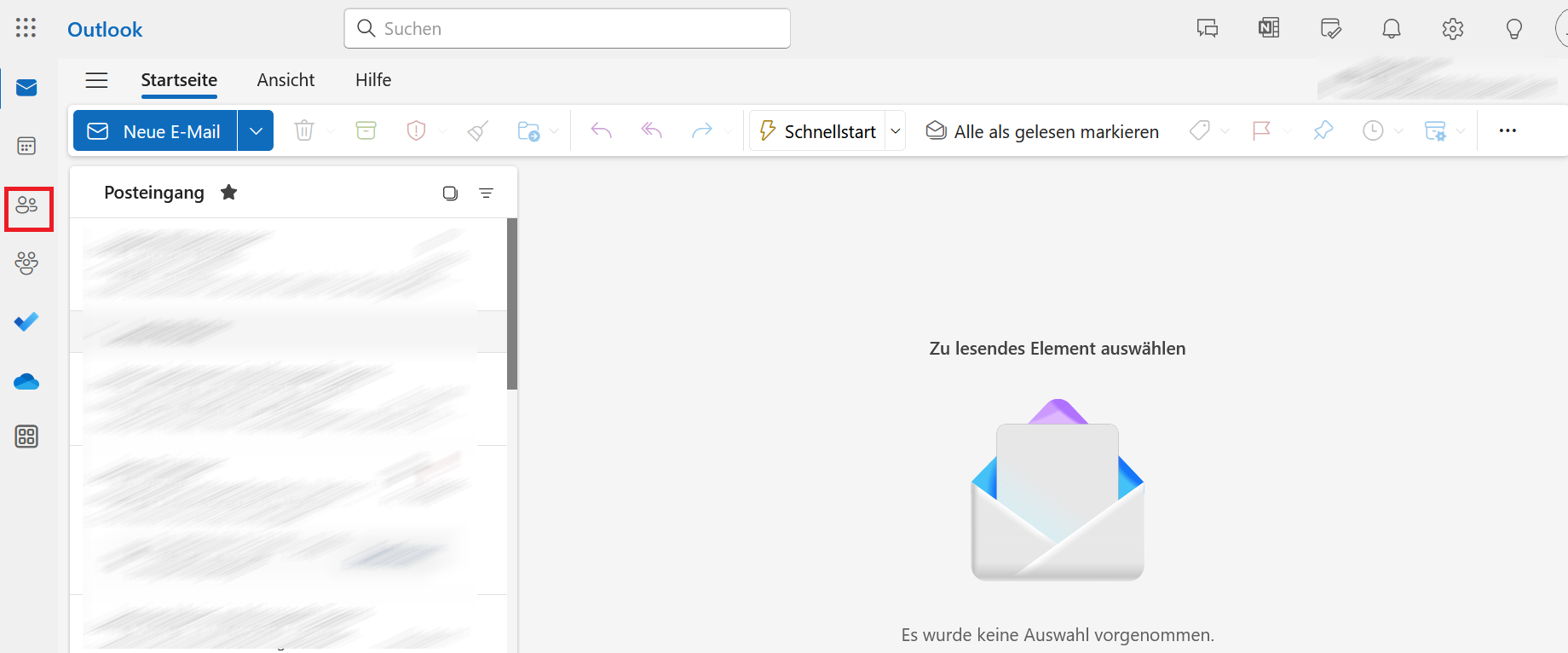 Auch in Outlook im Web können Sie neue Kontakte in Ihr Outlook-Adressbuch importieren. Loggen Sie sich hierfür in der Webanwendung ein und klicken Sie anschließend auf das kleine Personensymbol, das sich in der Symbolleiste links unten befindet: