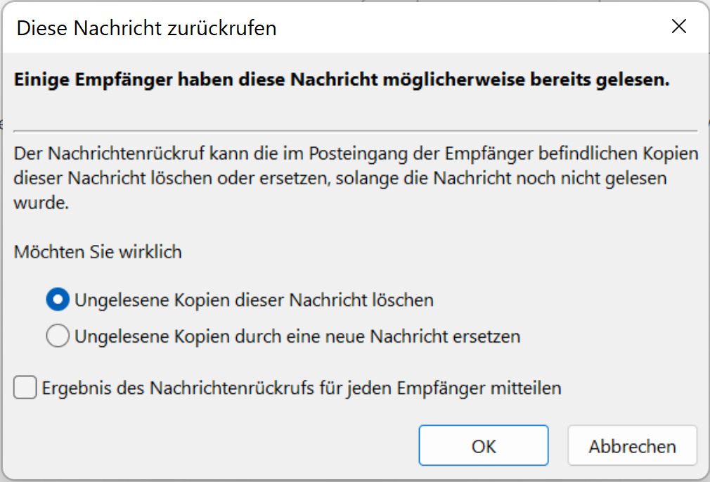 Voraussetzungen, um eine Outlook Nachricht zurückzurufen