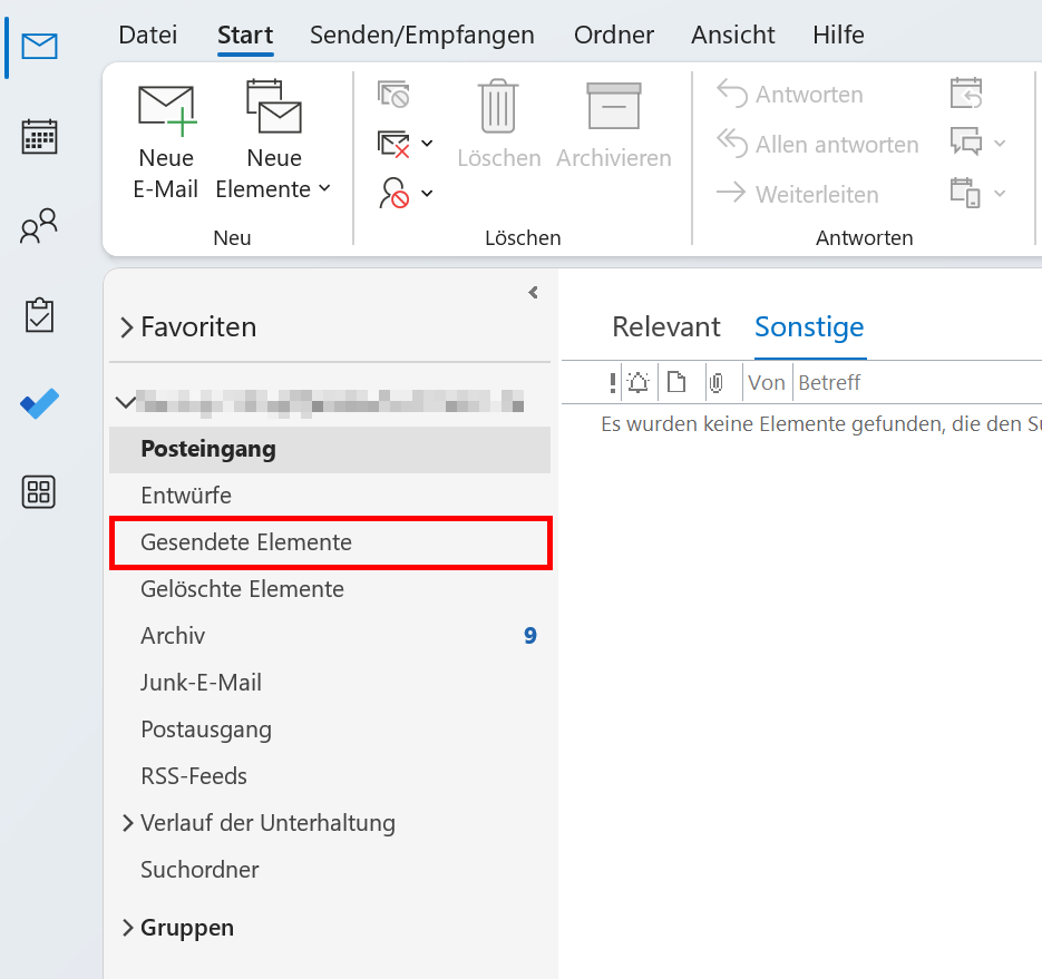 Schritt 1: Klicken Sie auf den Mail-Ordner „Gesendete Elemente“. Sie finden den Ordner im Mail-Verzeichnis auf der linken Seite Ihres Outlook-Fensters.