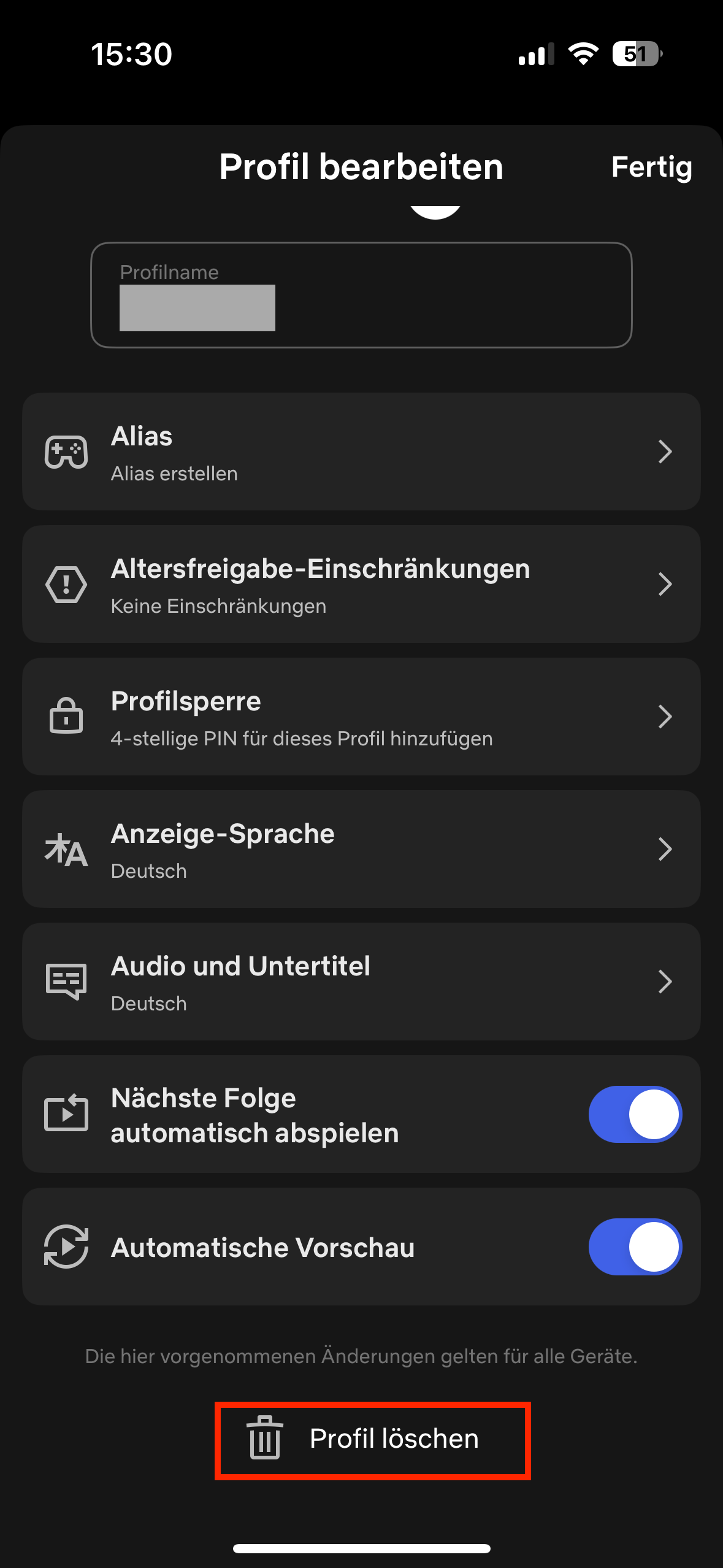 Netflix-Profil löschen