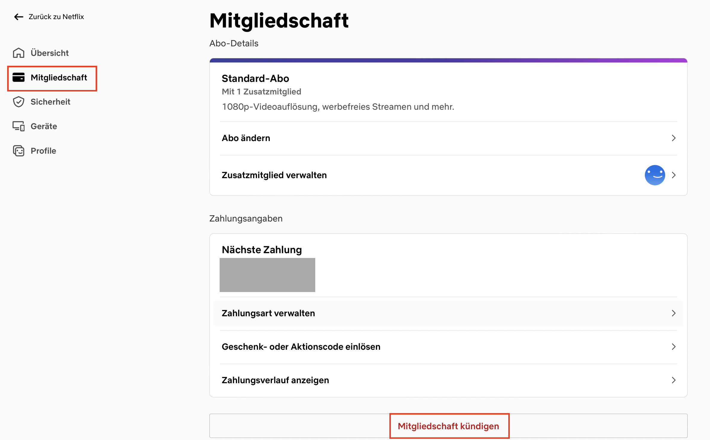 Schritt 2: Wählen Sie „Mitgliedschaft kündigen“ und bestätigen Sie Ihren Kündigungswunsch im nächsten Fenster.