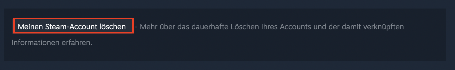 - Gehen Sie unten auf „Meinen Steam-Account löschen“.