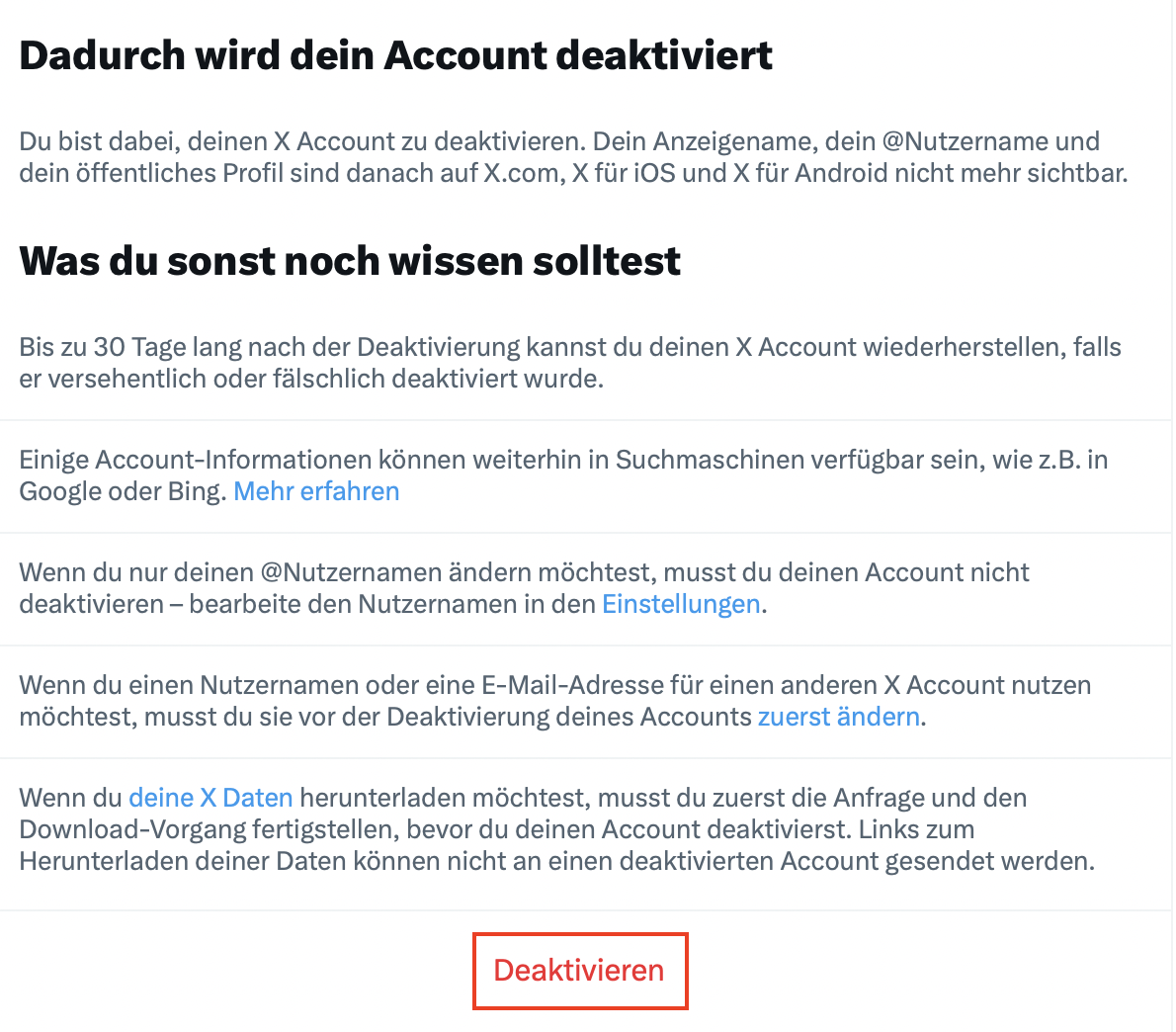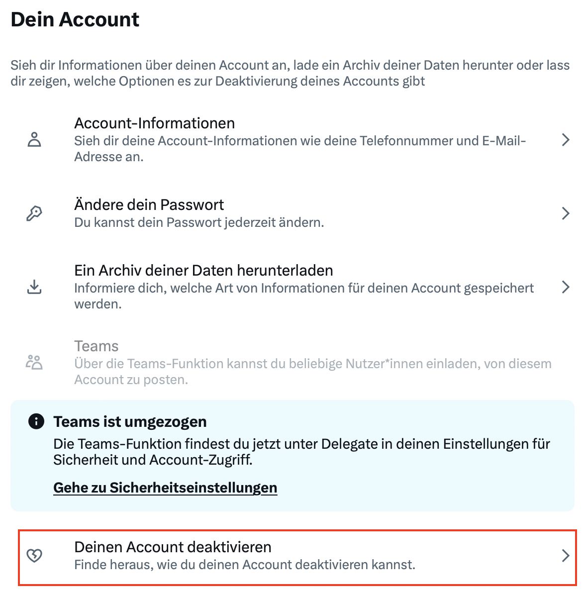 Schritt 3: Twitter-Account deaktivieren