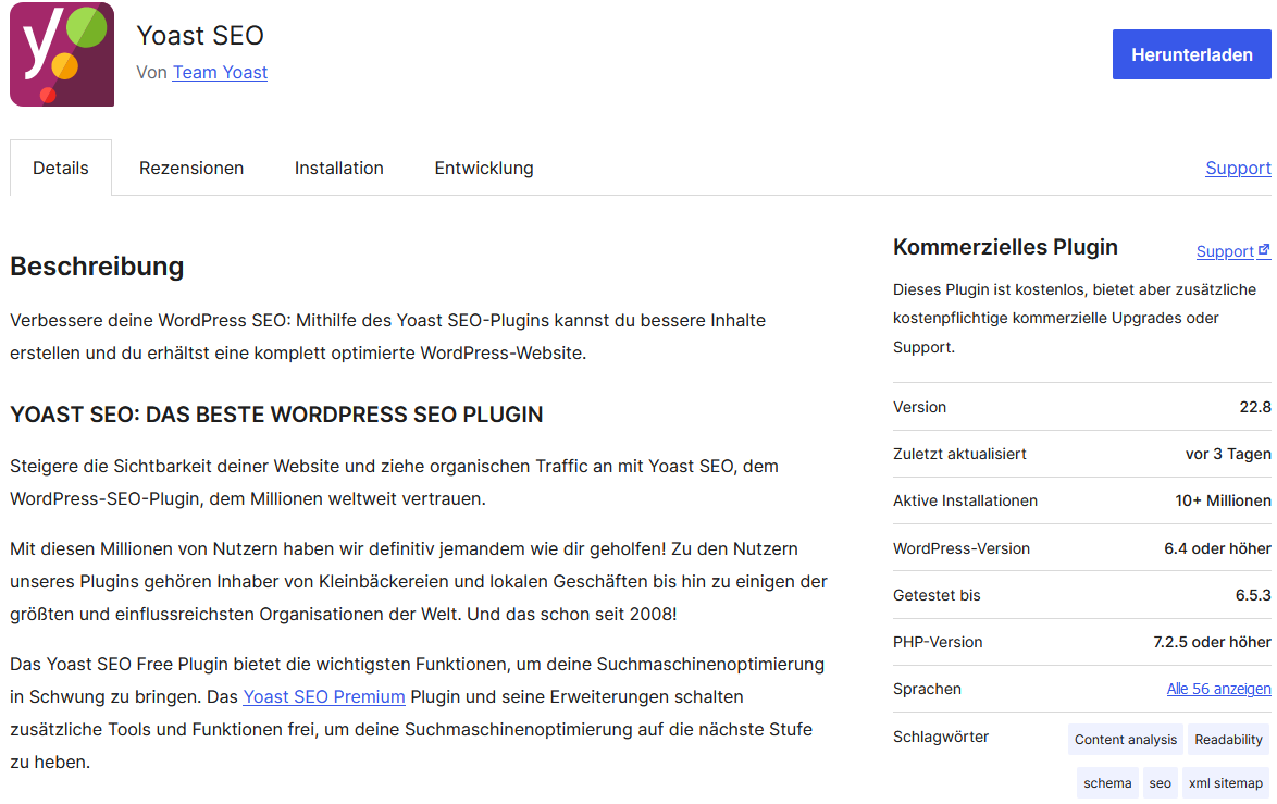 Dies ist bereits in der kostenlosen Version möglich. Das Premium-Plugin gibt beispielsweise noch mehr Unterstützung beim Schreiben von Texten, hilft bei internen Verlinkungen oder bietet einen professionellen Support.