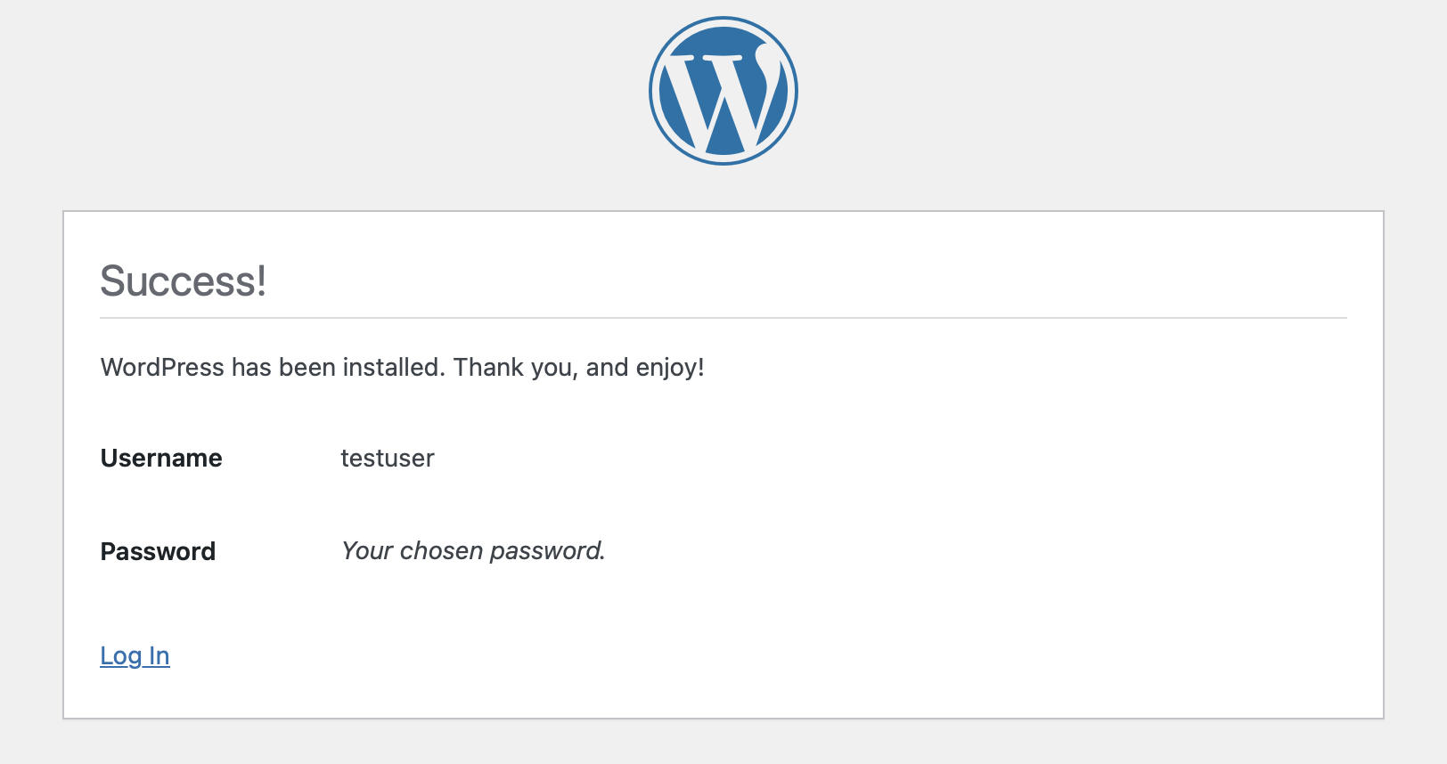 Nach geglückter Installation erhalten Sie eine Erfolgsmeldung und können sich anschließend bei WordPress einloggen.