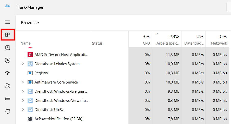 Um den Task-Manager nun dafür zu verwenden, den Arbeitsspeicher in Windows 11 und Co. zu leeren, wählen Sie das Menü „Prozesse“ aus: