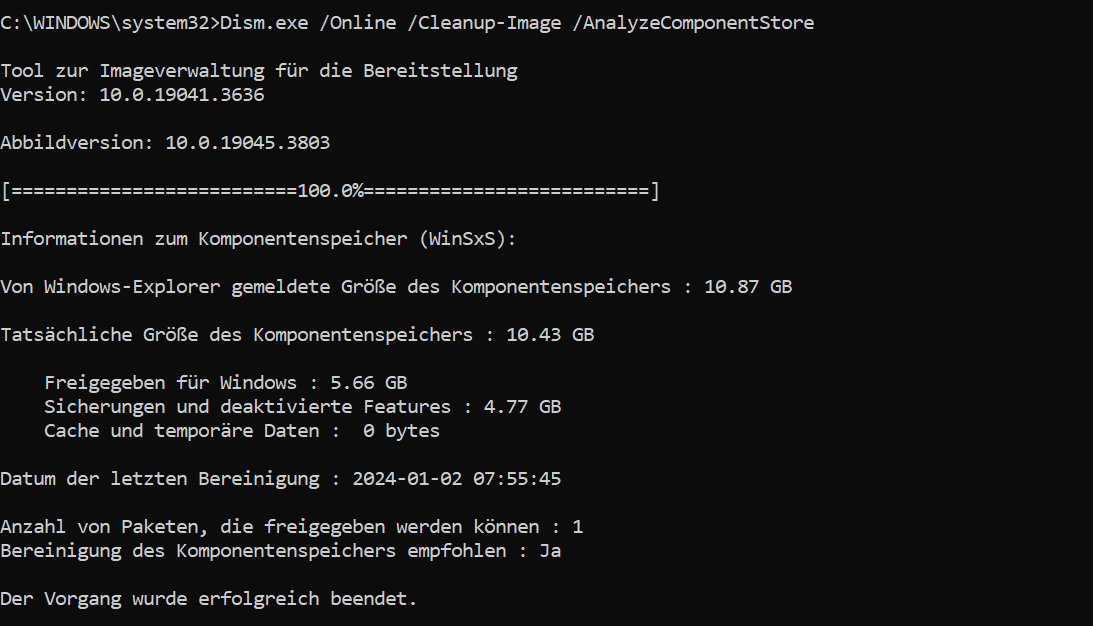 Um den WinSxS-Ordner aufzuräumen, führen Sie im letzten Schritt folgenden CMD-Befehl aus: