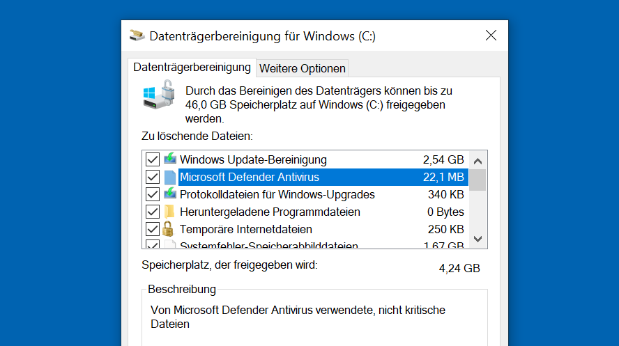 Falls Sie Ihre Dateien auf verschiedenen Datenträgern speichern, werden Sie vor dem Start der Datenträgerbereinigung gefragt, für welches Laufwerk Sie eine Bereinigung wünschen.
