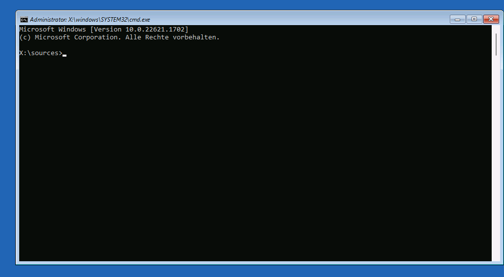Gehen Sie dazu als erstes den gewohnten Weg über „Problembehandlung“ > „Erweiterte Optionen“ und wählen Sie dort den Menüpunkt „Eingabeaufforderung“. Damit öffnet sich ein Fenster, in dem Sie direkte Befehle eingeben können.