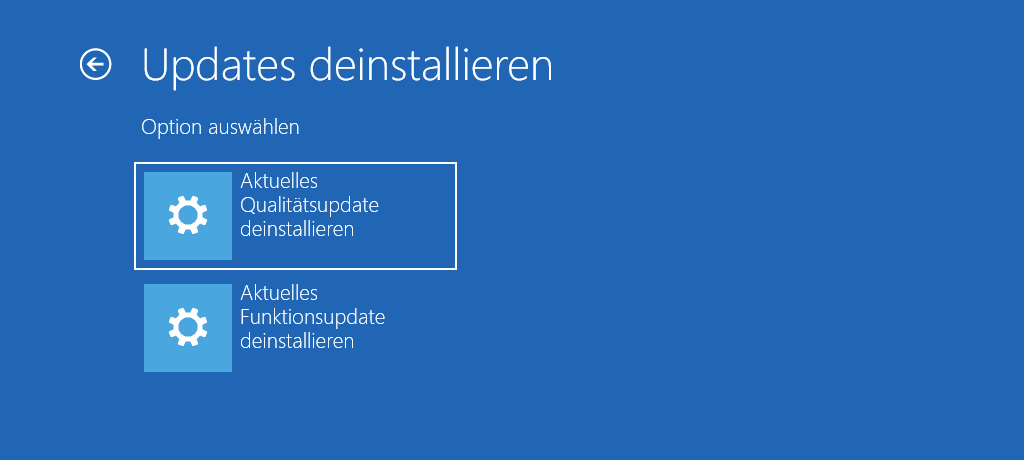 Es kommt immer wieder vor, dass Windows-Updates für Probleme beim Start sorgen. Es kann helfen, das letzte Update zu deinstallieren. Die Option dazu findet sich unter „Problembehandlung“ > „Updates deinstallieren“. Die regelmäßigen Qualitätsupdates lassen sich damit ebenso rückgängig machen wie einzelne Funktionsupdates.