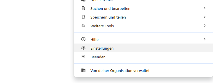 Schritt 1: Klicken Sie auf das Menü-Icon (drei Punkte) in der rechten oberen Ecke des Browser-Fensters und wählen Sie den Menüpunkt „Einstellungen“ aus, um Browsereinstellungen zu öffnen.