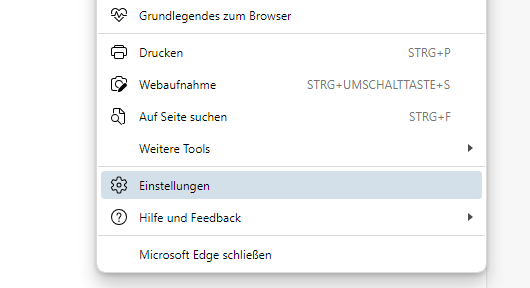 Schritt 1: Rufen Sie die allgemeinen Optionen von Edge auf (Drei-Punkte-Icon) und wählen Sie den Menüpunkt „Einstellungen“ aus.