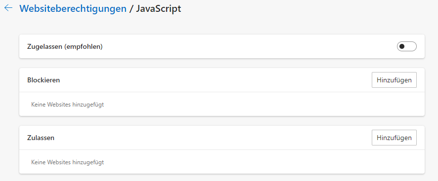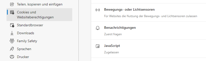 Auch Microsoft bietet Nutzerinnen und Nutzern von Edge die Möglichkeit, die clientseitige Ausführung von Skripten zu unterbinden. Die Deaktivierung gelingt folgendermaßen über die allgemeinen Browser-Einstellungen: