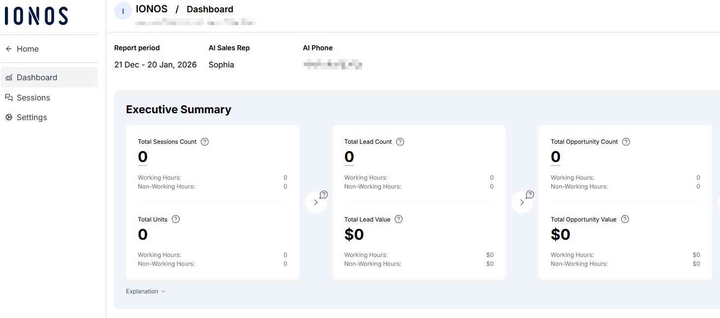 The IONOS AI Receptionist uses a clear SaaS pricing model with predictable monthly costs and no hidden fees. This helps businesses plan and manage their spending more effectively. Let’s assume you choose the mid-tier (“M”) plan for the IONOS AI Receptionist, which costs $49 per month and includes 100 monthly calls.