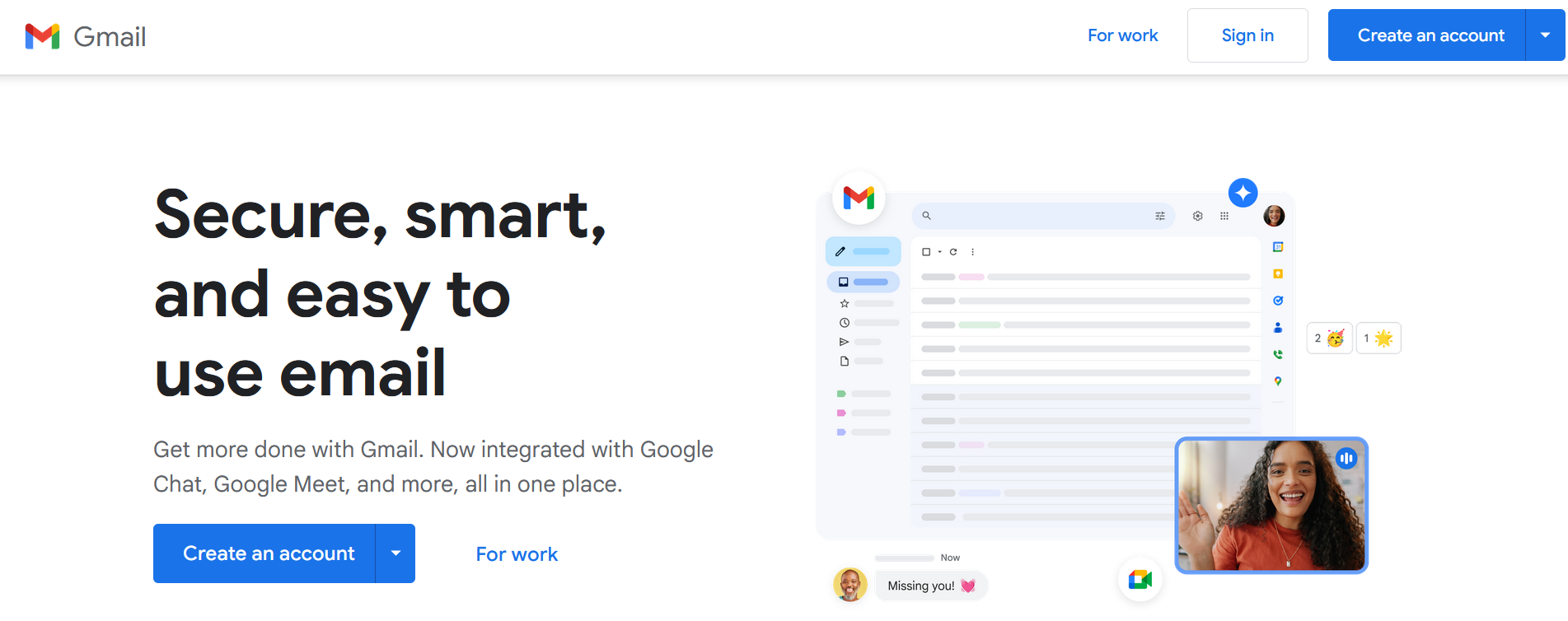 A further advantage of Gmail is its perfect integration into the Google universe. Alongside Google Drive, Google Meet is also very handy. With this you can chat with friends within Gmail and have video conversations with up to 100 people – and this across multiple devices as well.