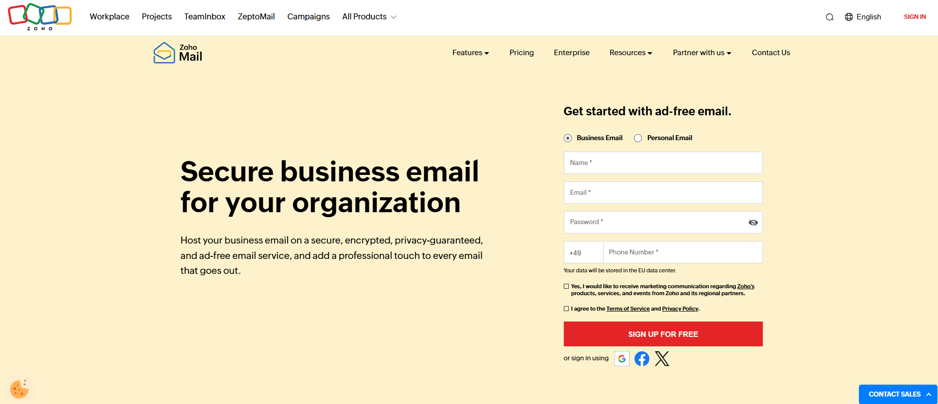 Zoho Mail is an email service designed for both individual users and businesses. The free plan is intended for personal use and, while relatively basic, it still provides all the essential features you would expect from a free email provider. Similar to Microsoft, Zoho offers a comprehensive suite of productivity tools. In addition to email, it includes instant messaging, a word processor, a calendar, document sharing, and several other features. Collectively, these services are known as Zoho Workplace.