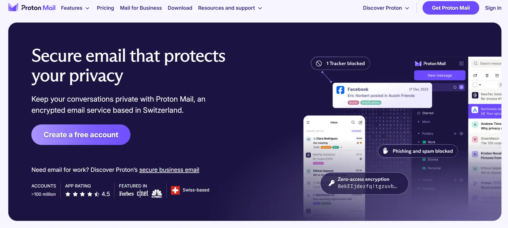ProtonMail is a great email option for users who prioritize privacy and security. It is an open-source, encrypted email provider based in Switzerland, operating under strict Swiss privacy laws. ProtonMail uses end-to-end encryption, ensuring that only the sender and recipient can read emails—not even ProtonMail itself. It also supports OpenPGP encryption and offers two-factor authentication (2FA) for extra security.
