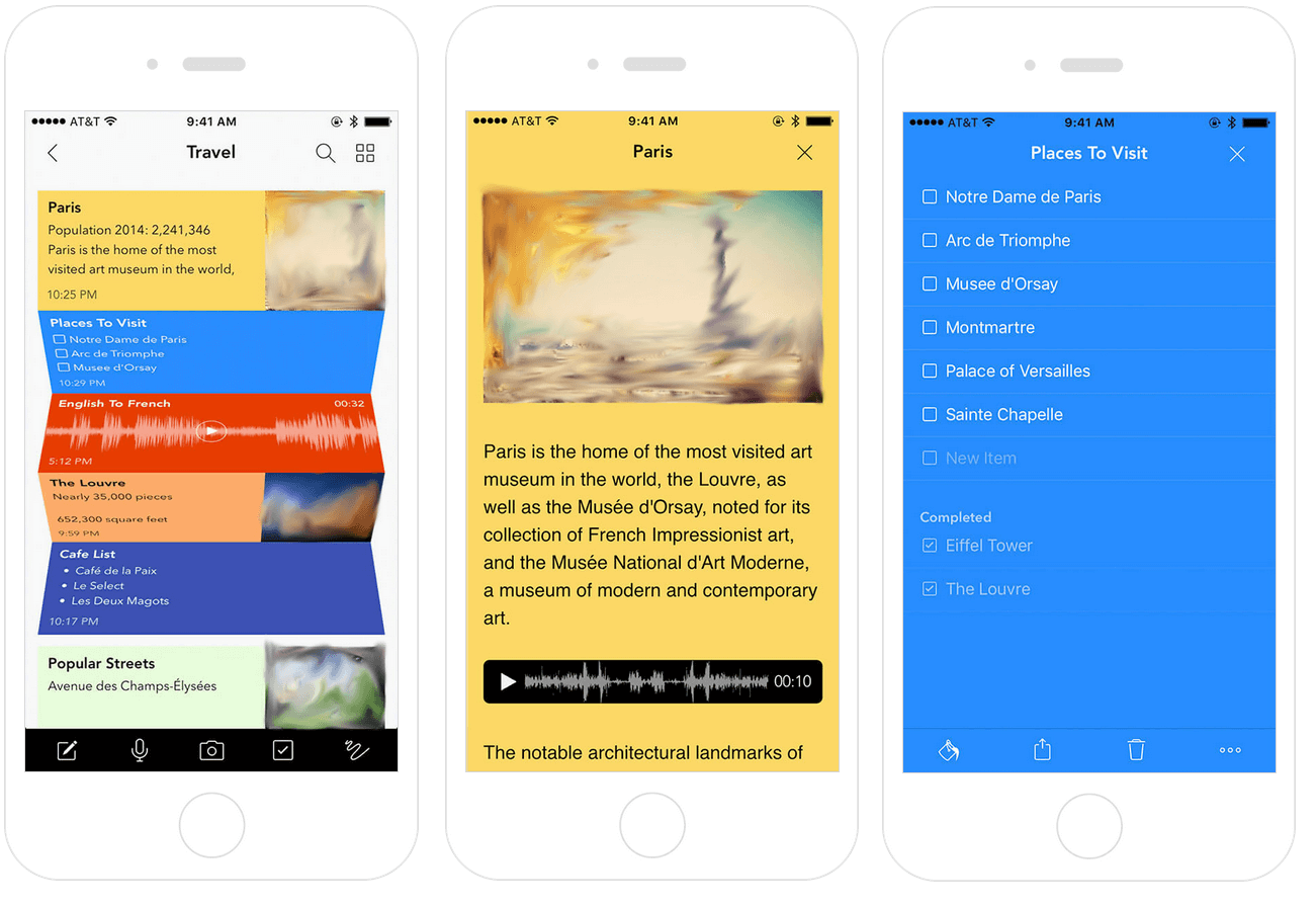 What Proud lacks, Notebook offers: Write or record your notes, create checklists, add pictures to your notebook, video – or audio recordings – with Zoho’s notebook, you can capture your notes and thoughts in a variety of different ways. In addition, the app is completely free or charge and ad-free!