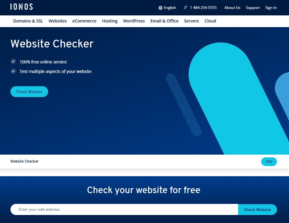 The Website Checker from IONOS is a free tool that analyzes your site’s speed, search engine friendliness, and security.