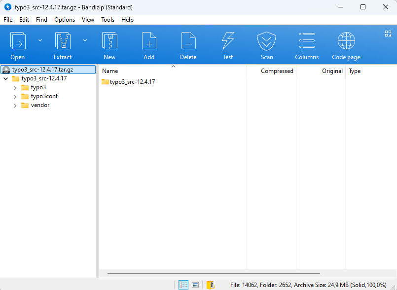 Step 4: Select the file, and it will open as a compressed archive for installing TYPO3 in your extraction program.
