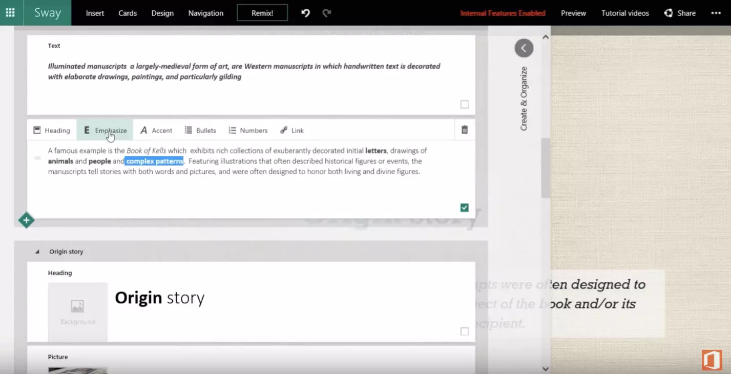 | Sway | Browser version and available as an app for iOS and Windows 10 | Free, several additional functions only available to Microsoft 365 subscribers | A ‘digital storytelling app’ designed for innovative and eye-catching presentations |