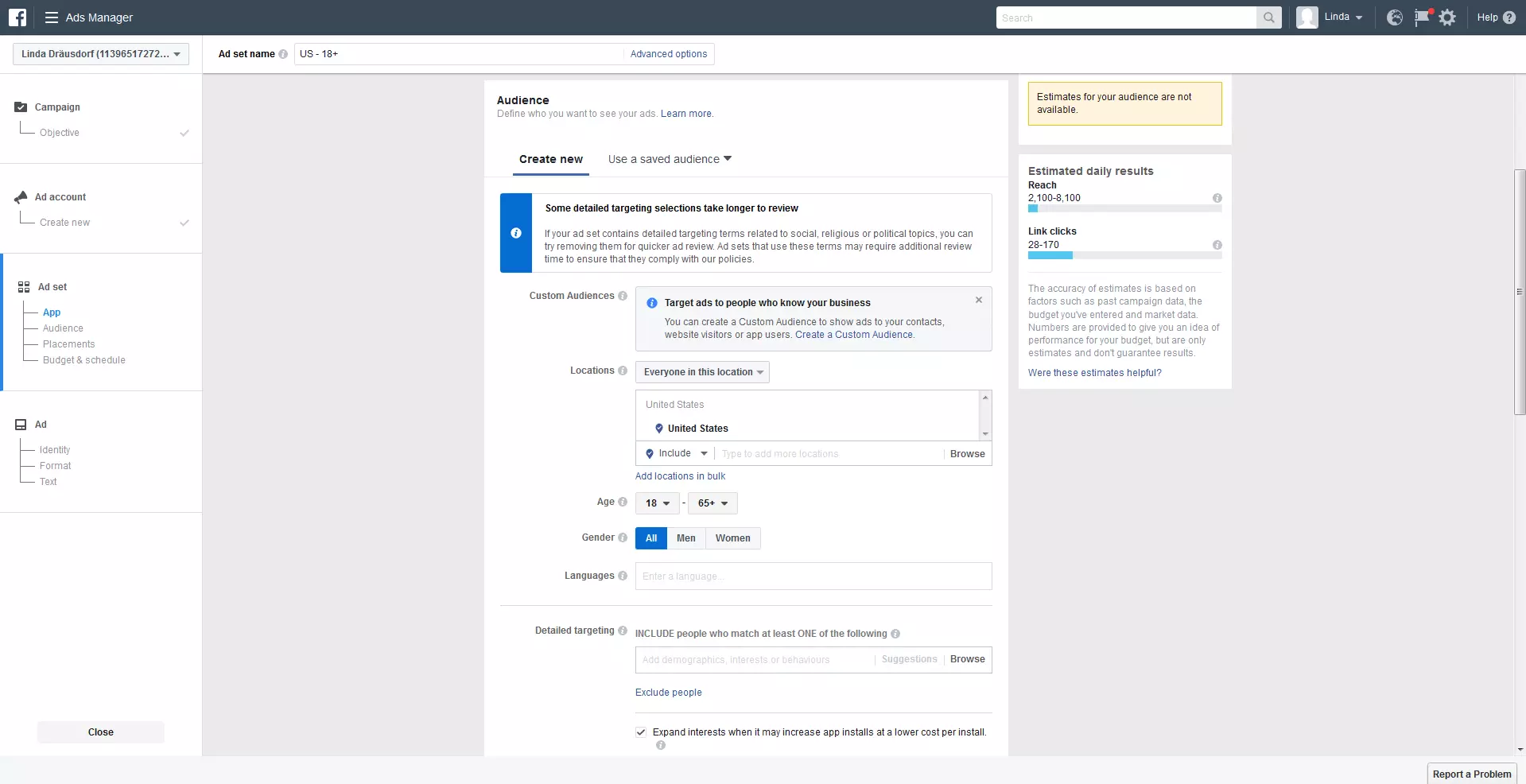 It is also possible to specify the time period (if you do not want the campaign to run until the end of the budget) as well as the target group. To do this, you need to specify the locations where your content is to be on display and the devices it is to be displayed on. An information field next to your specifications indicates the expected range of coverage. With just these few settings, your campaign is ready to go online. Success is easily monitored. Additionally, A/B tests help to identify the best strategy.