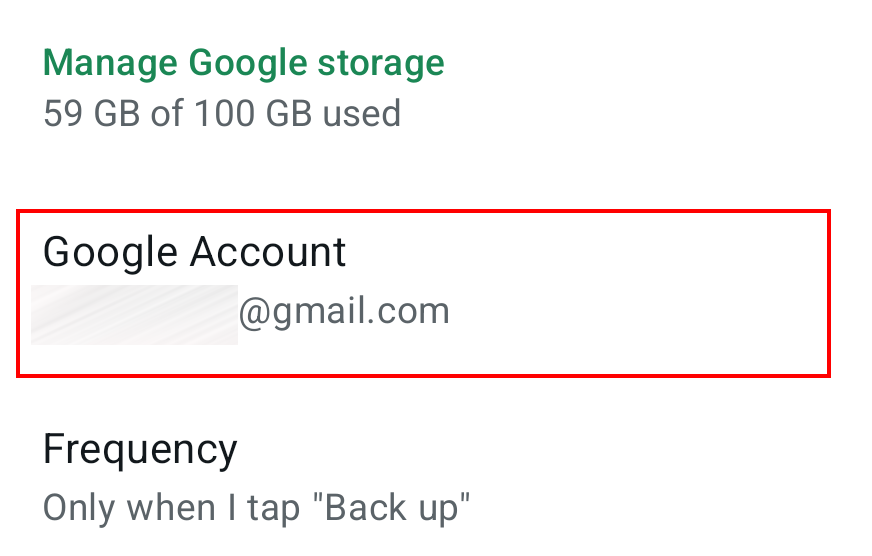 Step 6: Under “Google Account,” also select the Gmail address you want to use for the WhatsApp backup in Google Drive.