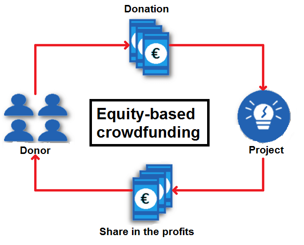 Example: A young startup company sells an environmentally-friendly soft drink locally, which is particularly popular among young customers. The company wants to expand across the US and commercialize the beverage. For this reason, it launches a crowdfunding campaign and promises investors a share of the subsequent profit, depending on the investment made. From a certain amount onwards, the investor is also promised a monthly beverage subscription.