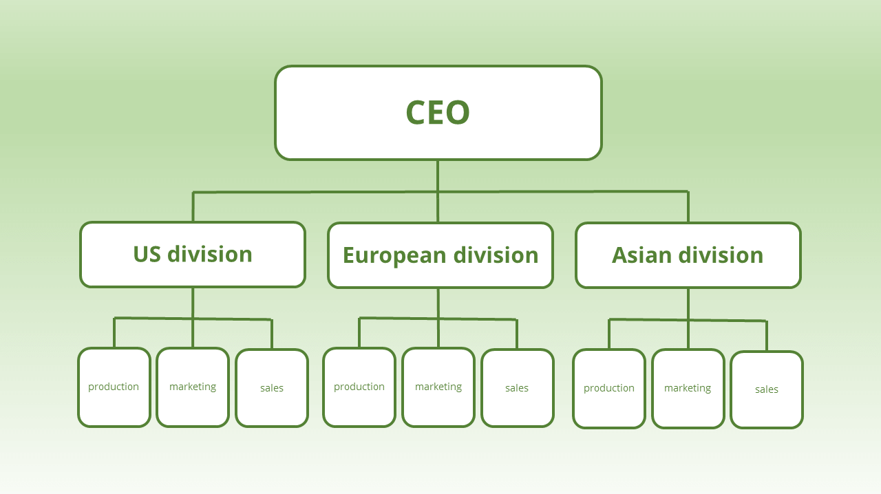 These structural elements, also known as “divisions,” each have separate functional areas, i.e. their own production, marketing, and sales departments.
