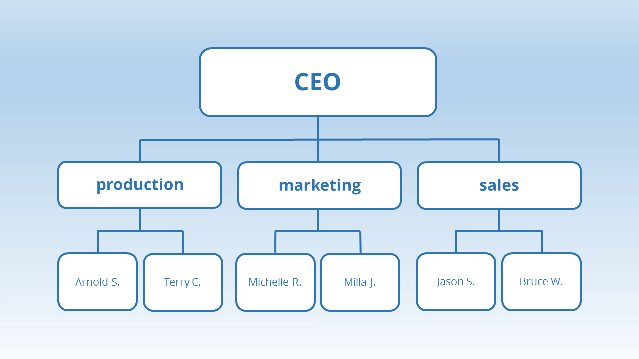 Designing the right organizational structure and presenting it in a clear organization chart is not that easy. The biggest difficulty is to create a solid and reliable structure in spite of complex and dynamic environments. In order to do justice to this task, you first need to know what such an organizational chart consists of: