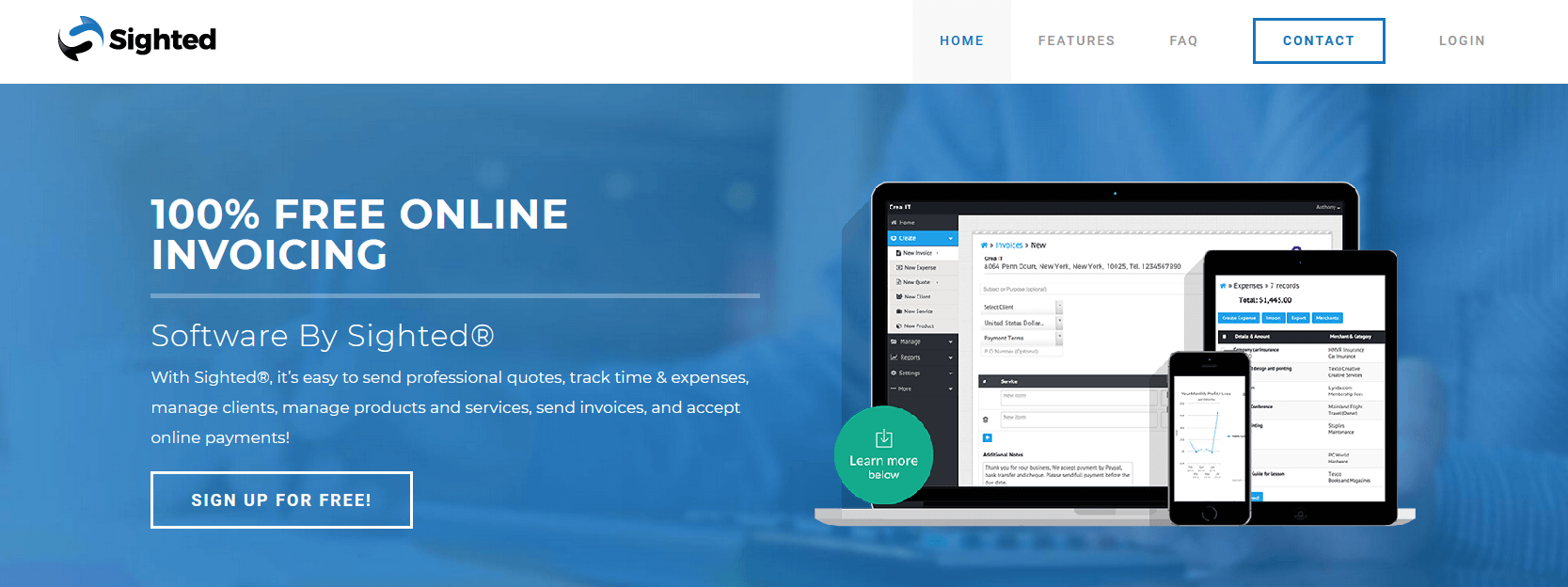 Sighted is the invoicing software that does it all - from creating and sending invoices and accepting payments, to managing clients and products. You can customize your invoice according to currency, products or services rendered, and include fees by the hour, project or amount of products. Sighted has multiple online payment options and syncs with PayPal, as well as allowing credit/debit card payments. Sighted is accessible by both desktop and mobile, and includes top of the range SSL encryption to ensure that your data is secure.