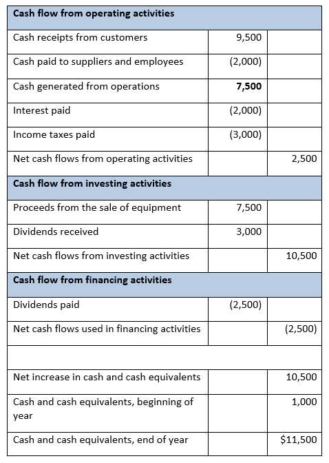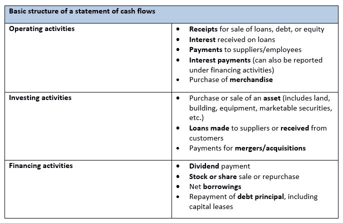 These sections are followed by a general statement of the net increase or decrease in cash.