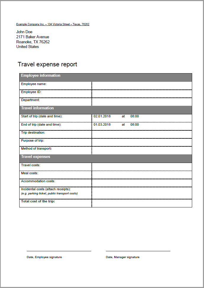 Employees simply need to open the travel expense report template, fill out the document, and then save it. This requires very little effort, but at the same time the accounting department can easily analyze the information contained. In addition, all parties involved can be sure that all necessary information is provided.