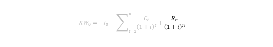 The net present value is the sum of all an investment’s discounted deposits and payouts at the present time. It is also known in English as “net present worth”, or NPW.