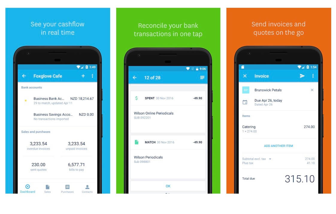 The QuickBooks accounting app automates many tasks to save time such as recurring invoices or bill payments. It also allows users to categorize their expenses and send email reports. Data is auto-backed up which is a great feature if you’re worried about losing access to your accounting data. The Plus plan includes incremental invoicing which business owners can use to allow their customers to pay for certain jobs in stages. Importantly, the app comes with good customer service. So if you’re stuck or need help, you can chat to Intuit to discuss a solution.