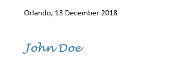 Date, place, and signature