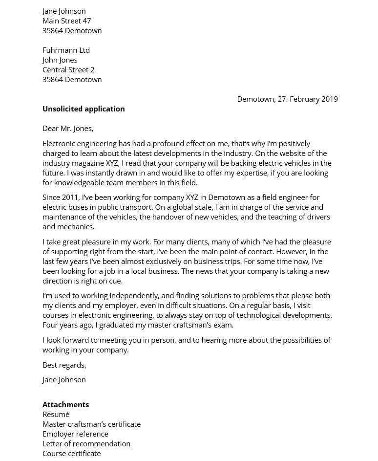 When it comes to unsolicited application cover letters, it’s incredibly important that your cover letter stands out. What motivated you to send your application to this particular company needs to come through. That’s why you should never just copy a template – you should only ever use them as inspiration for your own application.