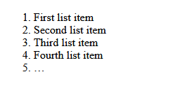 The syntax for ordered lists looks like this: