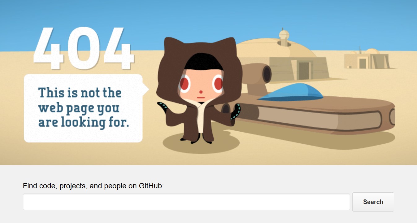 The online service for developers is surely used by many “Star Wars” fans. GitHub’s 404 page references a famous quote from the saga and has likely made some users smile—complete with the GitHub mascot in Jedi Master attire.