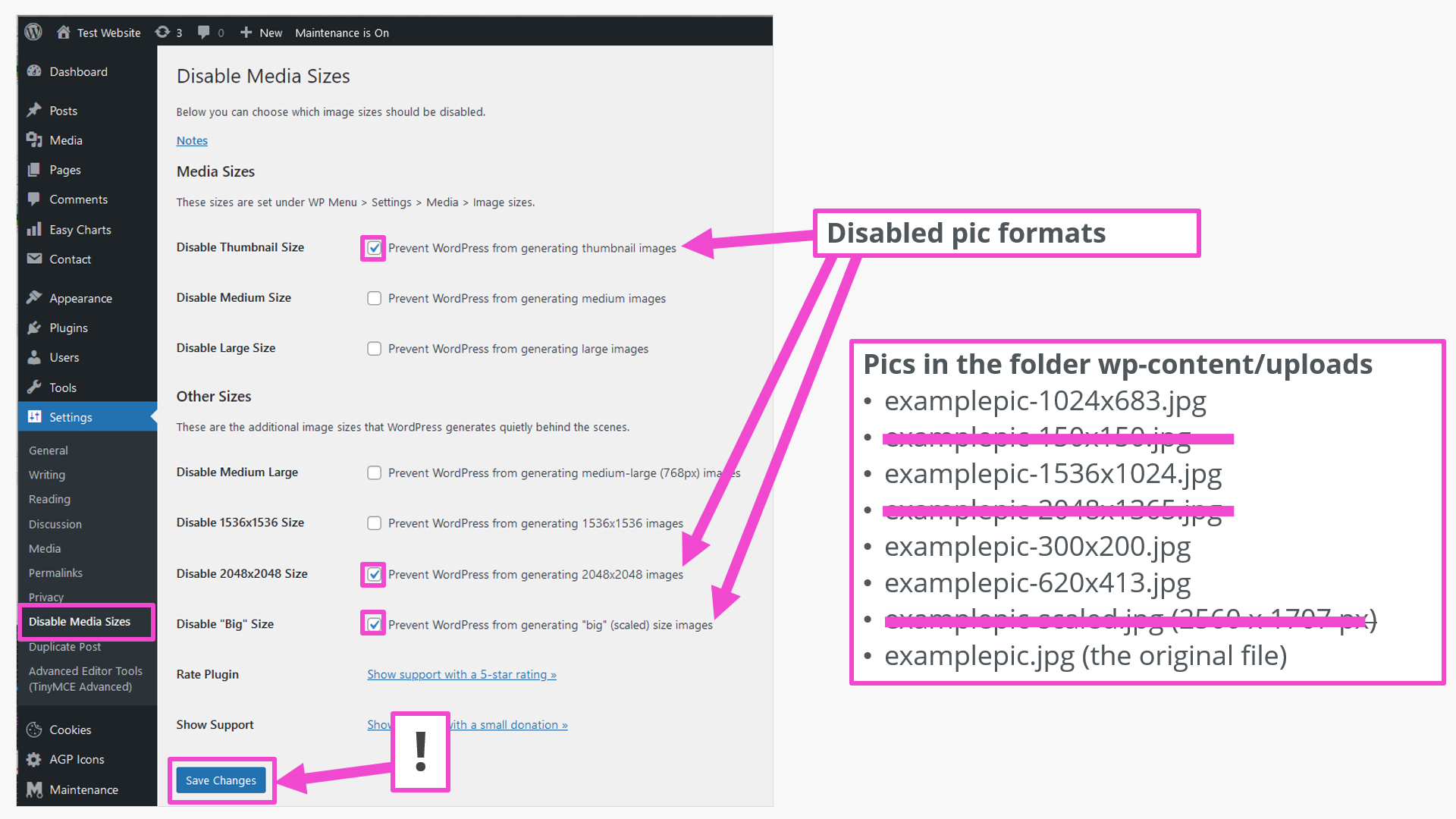 Summary: Optimise WordPress image sizes