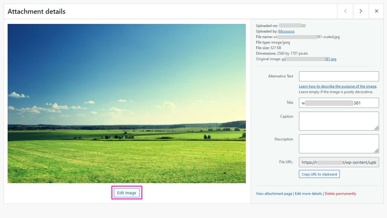Step 1: Select image in the media library and click ‘Edit image’