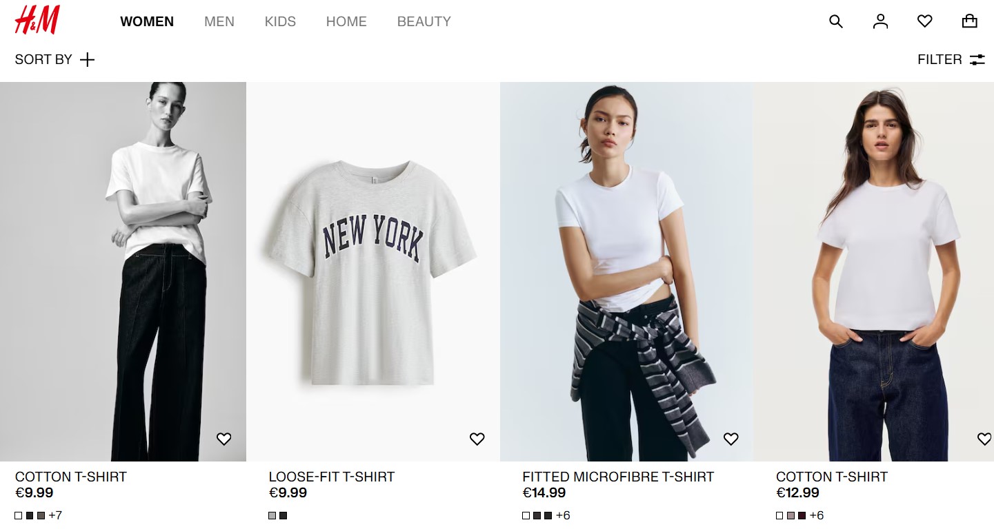 In online stores, preview images often display a neutral view of the product against a white background (cutout), without elaborate staging. In fashion stores, models often appear in a neutral pose on thumbnails; aesthetically pleasing perspectives and detail shots are shown only on the product detail page.
