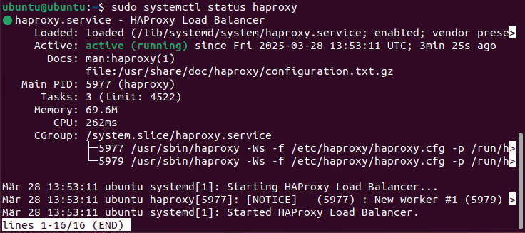sudo systemctl status haproxybashIf HAProxy is running, the output should look something like this: