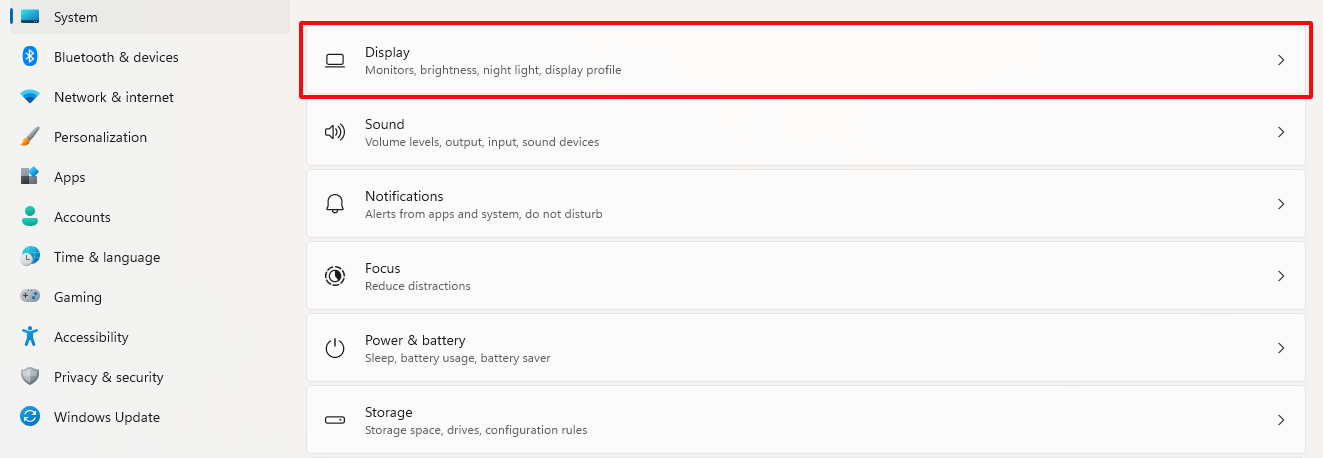 - Continue with the subitem Display at the top of the list. Here you can also set the brightness for your screen or adjust the number of screens being used.