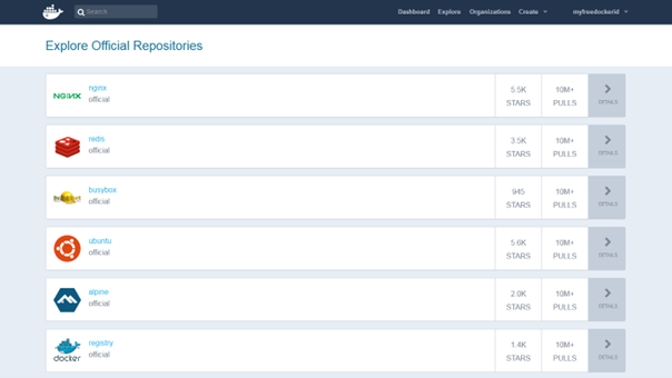 In addition to the public repositories of other Docker users, there are also many resources from the Docker developer team and well-known open-source projects that can be found in the official repositories in Docker Hub. The most popular Docker images include the NGINX webserver, the Redis in-memory database, the BusyBox Unix tool kit and the Ubuntu Linux distribution.