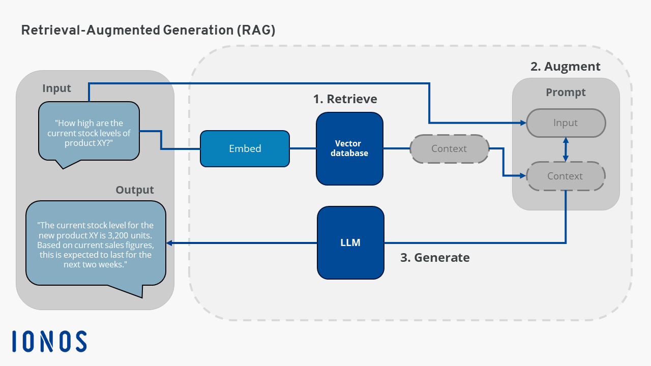 An important aspect of RAG is the use of embeddings. Embeddings are numerical representations of information that allow machine language models to find similar objects. For example, a model that uses embeddings can find a similar photo or document based on their semantic meaning. These embeddings are stored, for example, in vector databases, which can be searched and understood efficiently and quickly by an AI model. To ensure that the information is always up-to-date, it is important to update the documents regularly and adapt the vector representations accordingly.