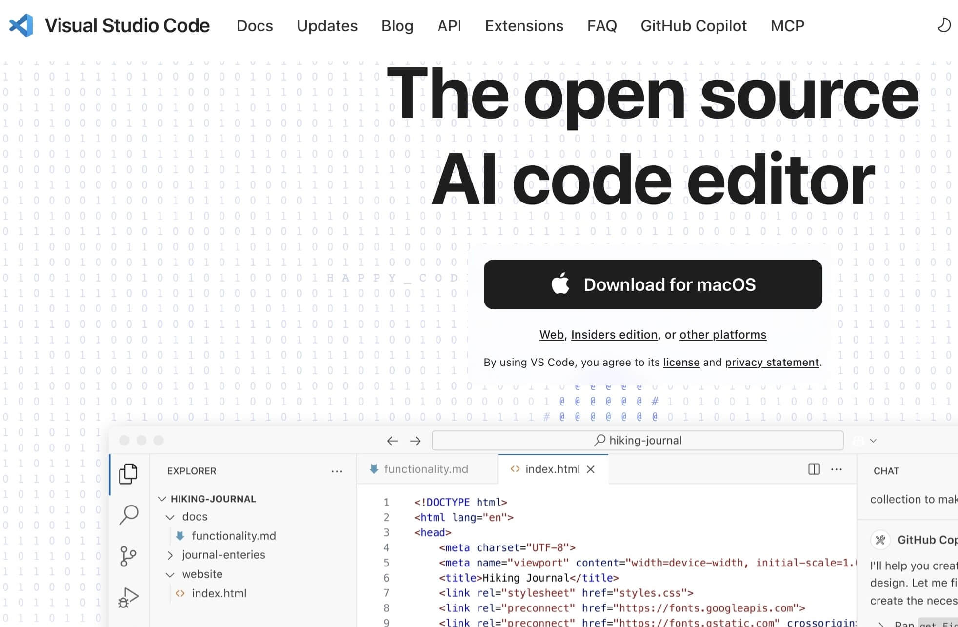 Visual Studio Code, often called VS Code for short, is an open-source code editor from Microsoft that has rapidly become the most popular development environment worldwide since its release in 2015. As a free and cross-platform Dreamweaver alternative, the editor stands out for its high flexibility, modular structure, and active community. VS Code runs on Windows, macOS, and Linux, and the basic version already includes many features that meet the needs of modern web developers. These include integrated Git-support, syntax highlighting, intelligent code completion (based on IntelliSense), an integrated terminal, and a live preview via appropriate extensions.
