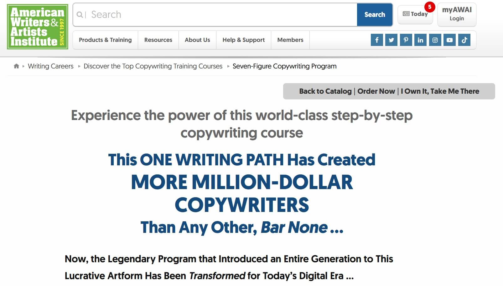 For inspiration, check out the American Writers & Artists Institute (AWAI) website, which promotes its courses through classic landing pages: